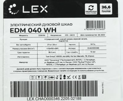 Сообщите нам, что вы думаете о LEX EDM 040 WH духовой шкаф, оставив оценку продукта. Хотите поделиться вашими впечатлениями от данного изделия или задать вопрос? Вы можете оставить комментарий в нижней части страницы.
