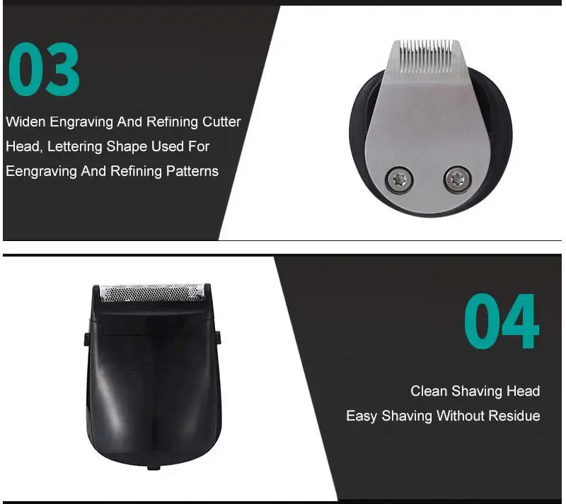 Сверхкороткий шаг зубьев, длина ворса всего 0.1 мм, можно использовать для резьбы, обрезки и проталкивания света | Низкая температура на работе, обеспечивающая нежную и комфортную стрижку | Нержавеющая сталь высокой твердости, автоматическое шлифование без ржавчины, долгий срок службы |